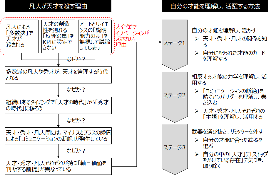 世の中の組織力学を「天才」「秀才」「凡人」の3人の登場人物を用いて、シンプルに解き明かしています。