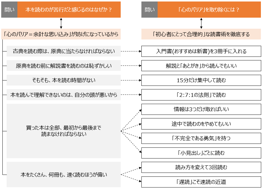 「読書が苦手な人が抱いている、心のバリア」をスッキリ取り除いてくれるのが、この本の魅力といえるでしょう。